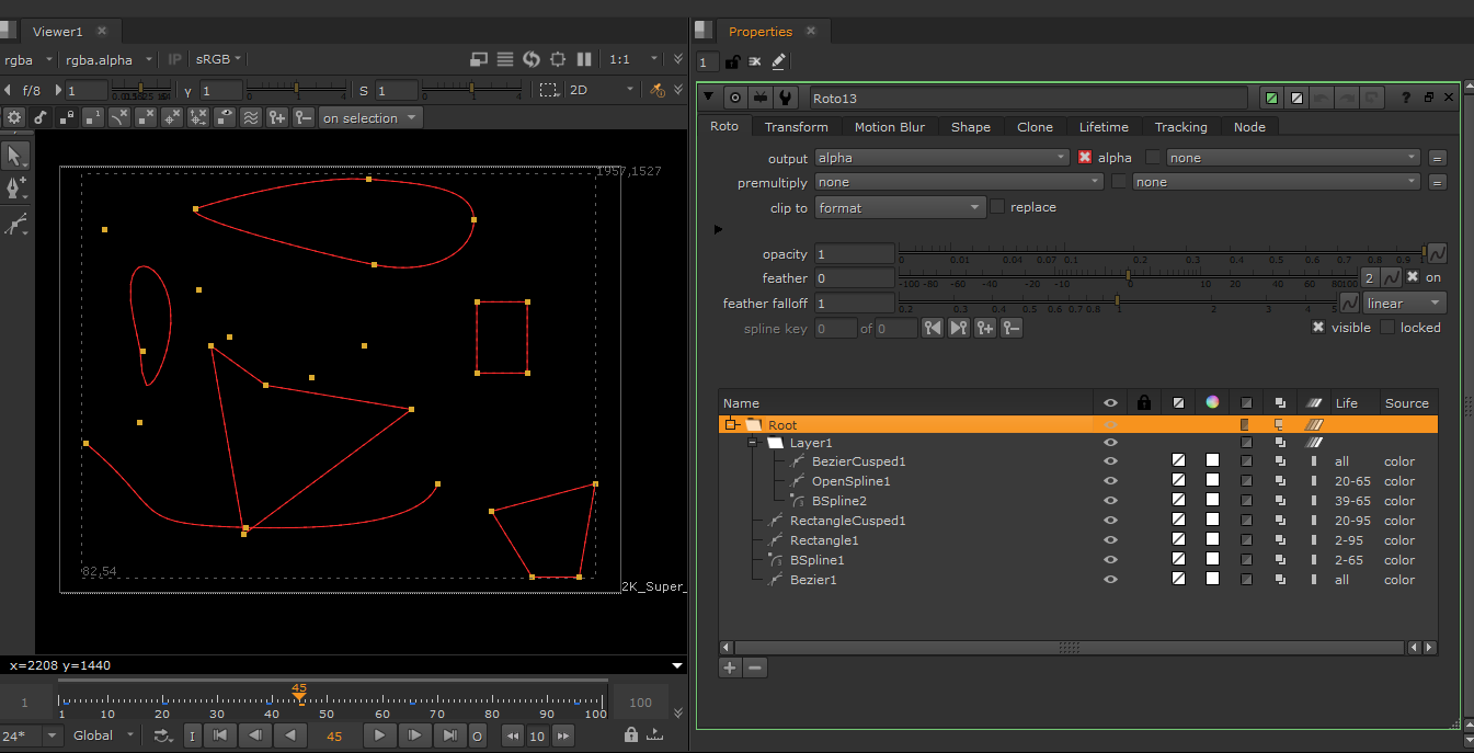 Python Code snippet to automatically set the lifetime of shape objects in roto and rotopaint nodes